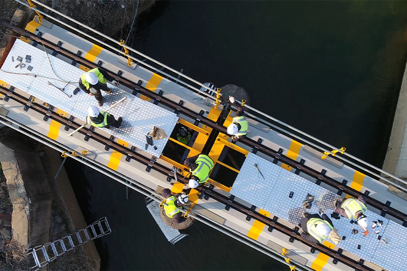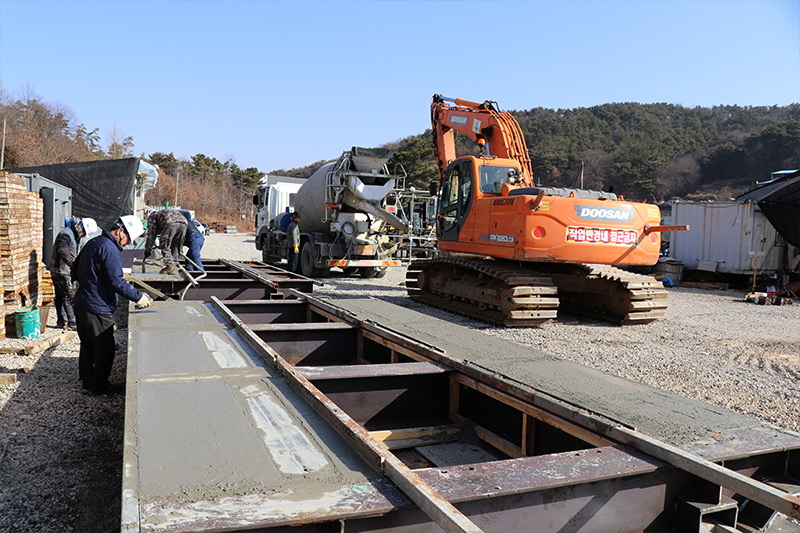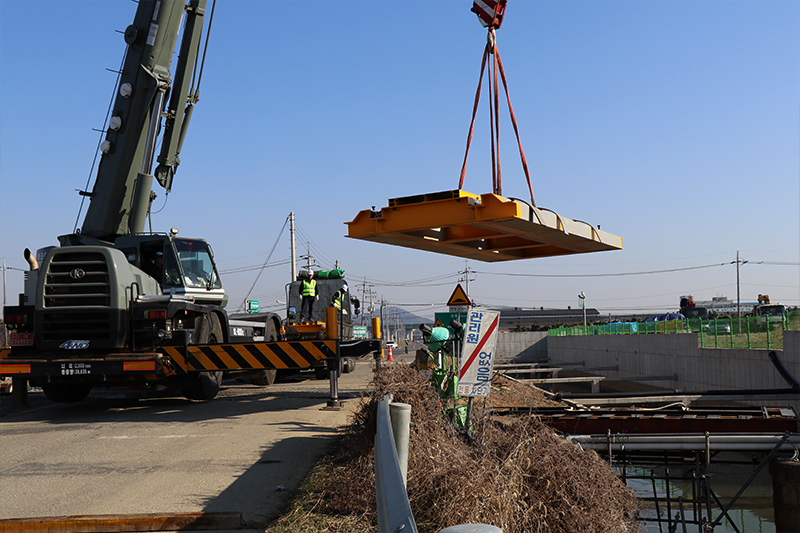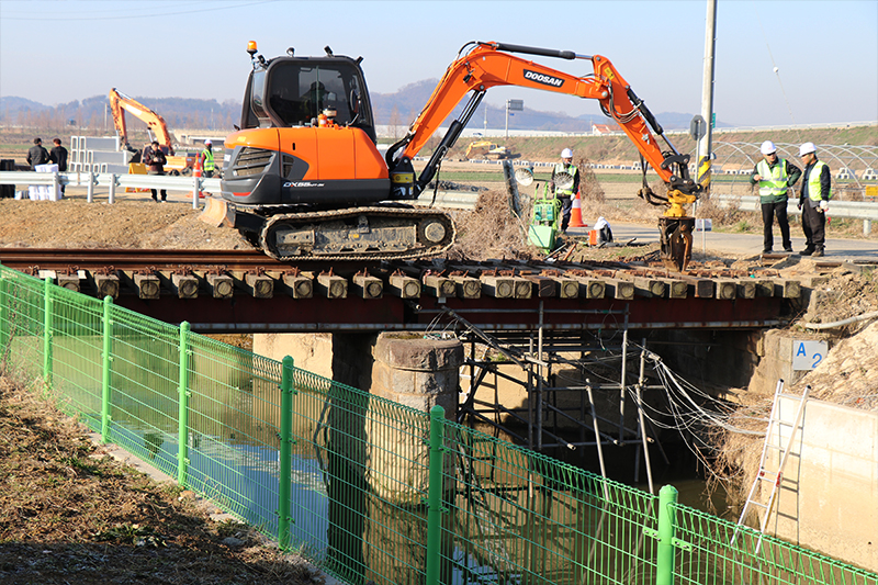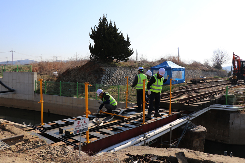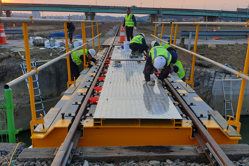 기존의 무도상 철도교량은 소음과 진동이 매우 심하고 유지보수가 어렵다는 단점이 있었습니다. 트리폴건설㈜는 열차가 운행되지않는 짧은 심야시간대에 기존 교량을 철거하고 유도상화 공법을 통하여 프리캐스트 콘크리트(또는 철제) 슬라브 구조물 궤도로 철도교량을 교체설치합니다.